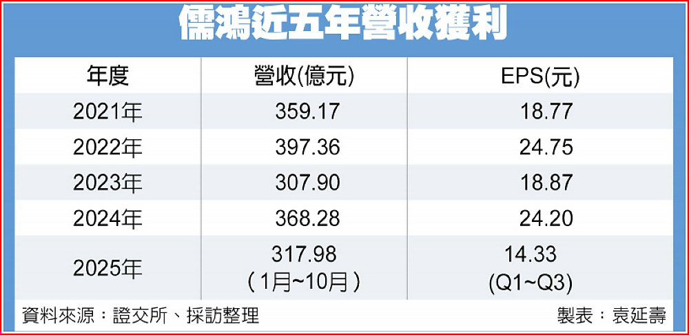 成衣業下半年起陸續擺脫美國關稅衝擊,業者營運逐步回溫,儒鴻第三季每股稅後純益(EPS)達6.02元,已追上去年同期水準,累計前三季稅後純益39.32億元、年減20.3%,EPS為14.33元。