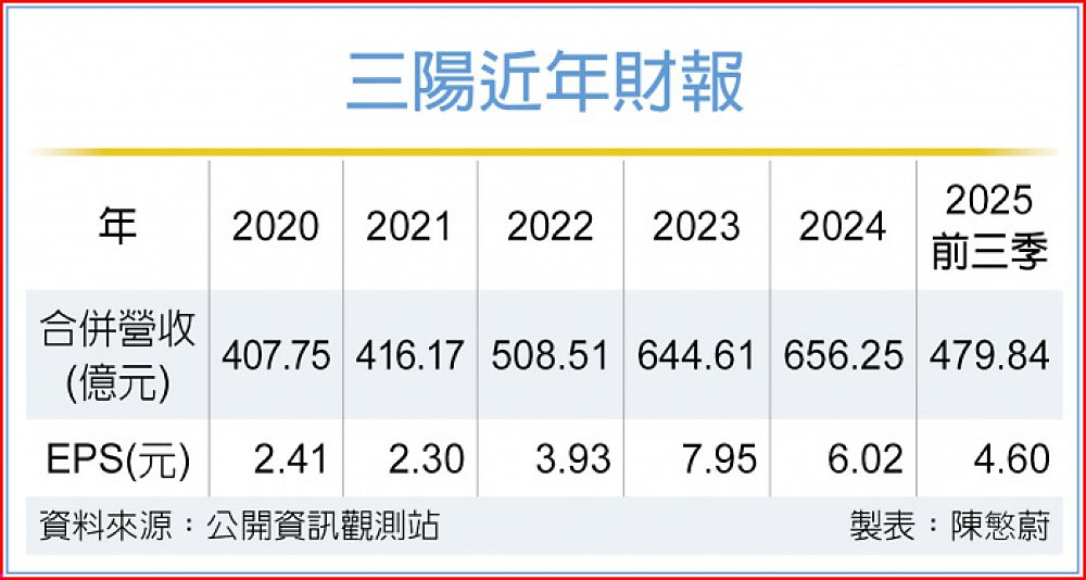 至於汽車事業部分,受關稅議題影響,三陽代理的現代(Hyundai)品牌汽車第三季銷售4,126輛,累計前三季銷售1.35萬輛,市占率4.5%。隨著貨物稅新政策公布,展間賞車人潮明顯回溫,三陽汽車銷售子公司南陽,以「月月有新車」的全方位產品節奏,陸續推出Santa Fe Calligraphy、Custin 2.0T、Staria Van與Staria Camper等新車款,帶動品牌整體銷售動能。