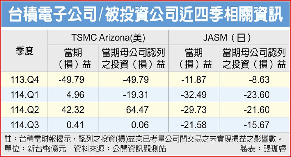 全球晶圓代工大廠台積電第三季季報公布,美國子公司單季獲利新台幣0.41億元,較上季42.32億元大幅縮水。法人預期,隨著TSMC Arizona二廠將於明年第二季完成裝機,折舊與建置成本將全面拉升,短期獲利難免承壓;但該廠3奈米產線已排定於2027年量產,一旦啟動將推升產能利用率,成為「美國製造」成長的重要關鍵。