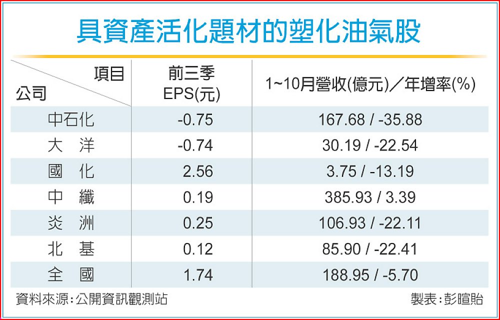塑化、油氣企業近年因產業景氣仍處調整,包括中石化、大洋、中纖、國化、炎洲、北基等業者,相繼展開資產活化布局,強化收益能量,支援轉型升級。