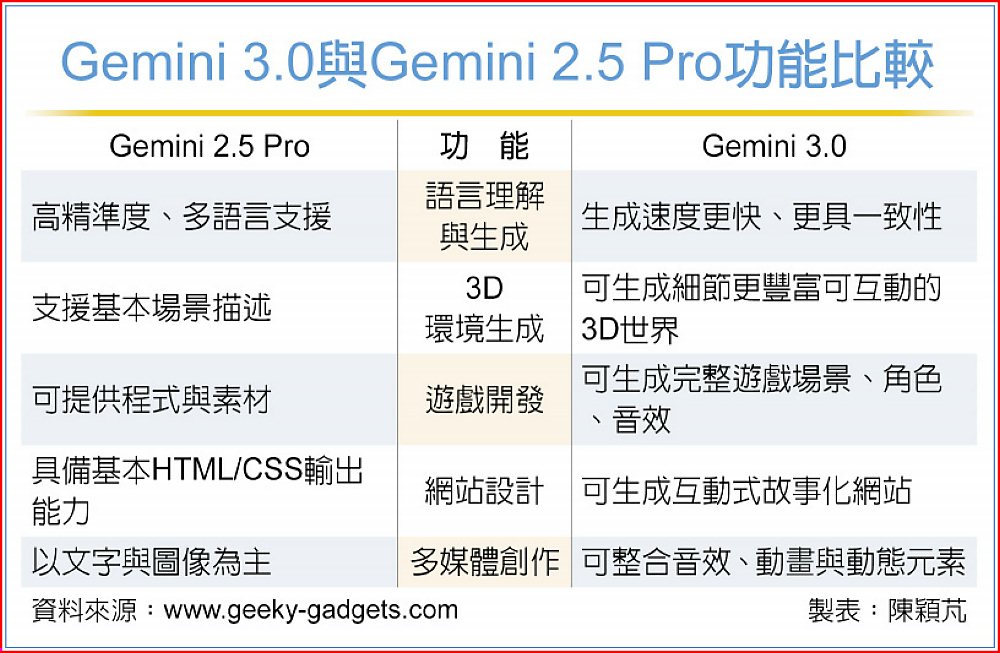 測試成果顯示,Gemini 3.0具備更高精準度、更快回應速度與更深層創作能力,已成功協助使用者創造遊戲、動畫場景與具有高度互動性網站。