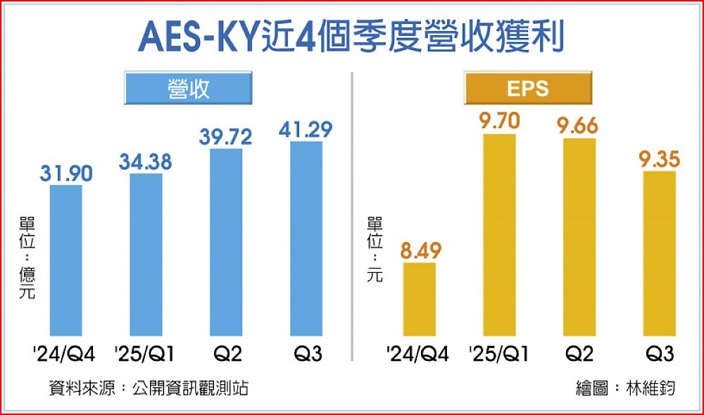 因應需求成長、規格提升,AES-KY明年資本支出將比今年成長2~3成。宋維哲表示,公司著重研發和自動化投入,明年研發人力持續擴編,另外廠房擴建、新線布局都有資本支出。特別針對高壓產線大規模擴產,以滿足明年下半年和後年遽增的需求。