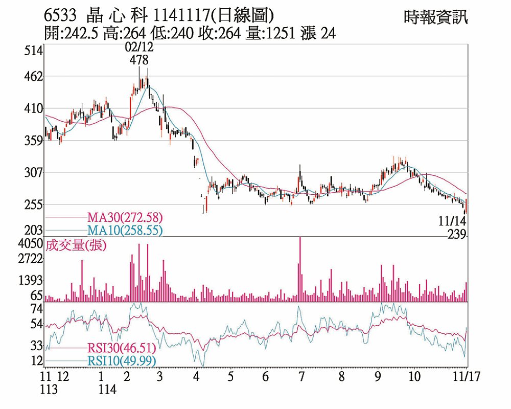 晶心科(6533)17日強勢衝漲停板,終場以264元作收;受惠外資進場加碼510張,股價突破短均壓力、挑戰月線反壓,呈現破底翻之姿。