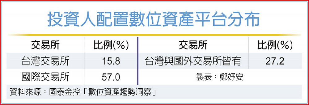 根據國泰金控數位資產趨勢洞察數據顯示,投資人對於國際虛擬資產交易平台仍有顯著偏好,有高達57%的資產主要配置於國際交易所,遠高於台灣本地平台,僅有15.8%的資產配置。一般來說,平台安全性以及交易流動性是國人在選擇交易平台的兩大考量點,其中,流動性指資產在市場中以穩定價格買賣的能力,為一金融市場穩健運作的根基。
