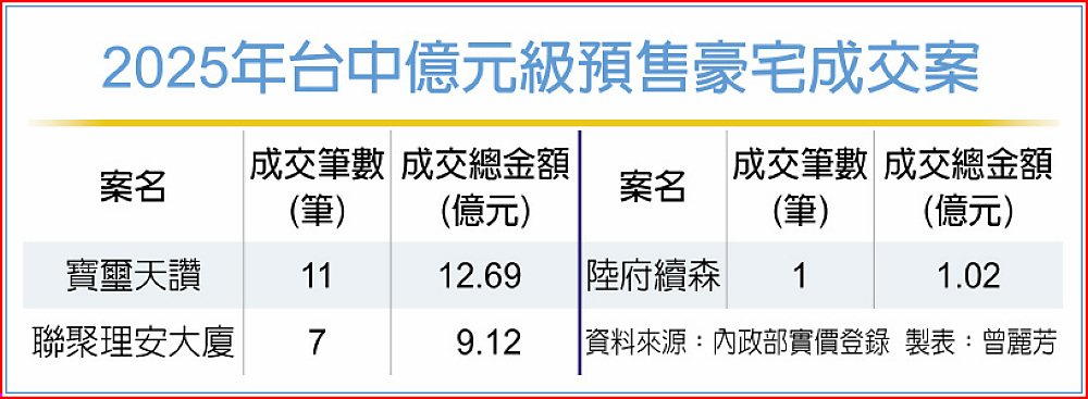 台中豪宅建商寶璽機構攜手日本日建設計,打造的七期超高層豪宅案「寶璽天讚」18日正式發表。寶璽建設在不設接待中心、不設樣品屋的前提下,據最新實登揭露資訊,該案已成交14戶,每坪成交均價達91.79萬元,最高成交單價98.01萬元,其中11戶每戶總價突破億元,登上中台灣2025年預售豪宅成交冠軍。