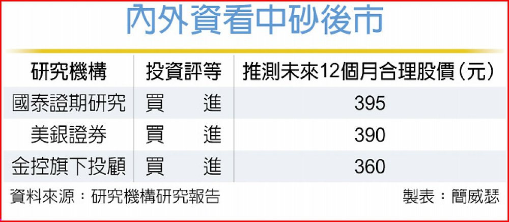 美銀證券指出,中砂(1560)憑藉技術與成本結構優勢,在先進製程升級帶動下持續提升市占,並受惠高效能運算(HPC)與行動應用加速採用先進製程,推動業務擴張,2026年每股將賺進超過一股本,初次納入研究範圍給予「買進」投資評等、推測合理股價390元。