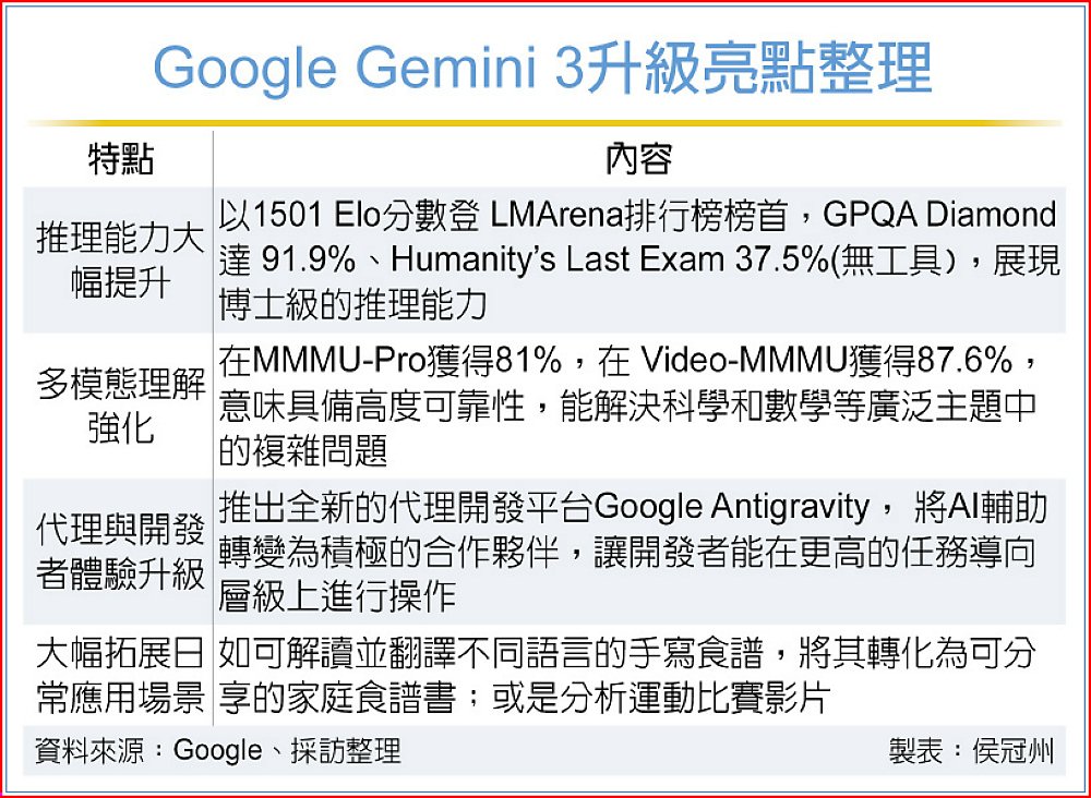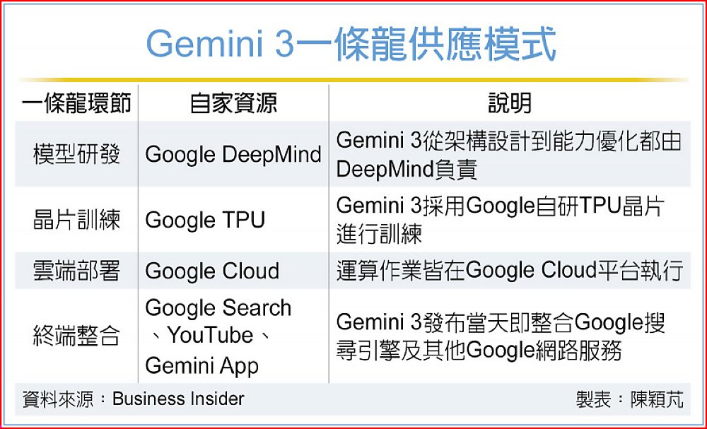 Google DeepMind技術長卡福果格魯(Koray Kavukcuoglu)表示,Google能做到跨產品線同日同步上線,關鍵就在於「端到端整合」,不需依賴外部AI晶片或雲端供應商,能大幅降低跨公司協作的複雜度,讓Gemini 3的更新速度遠快於對手。