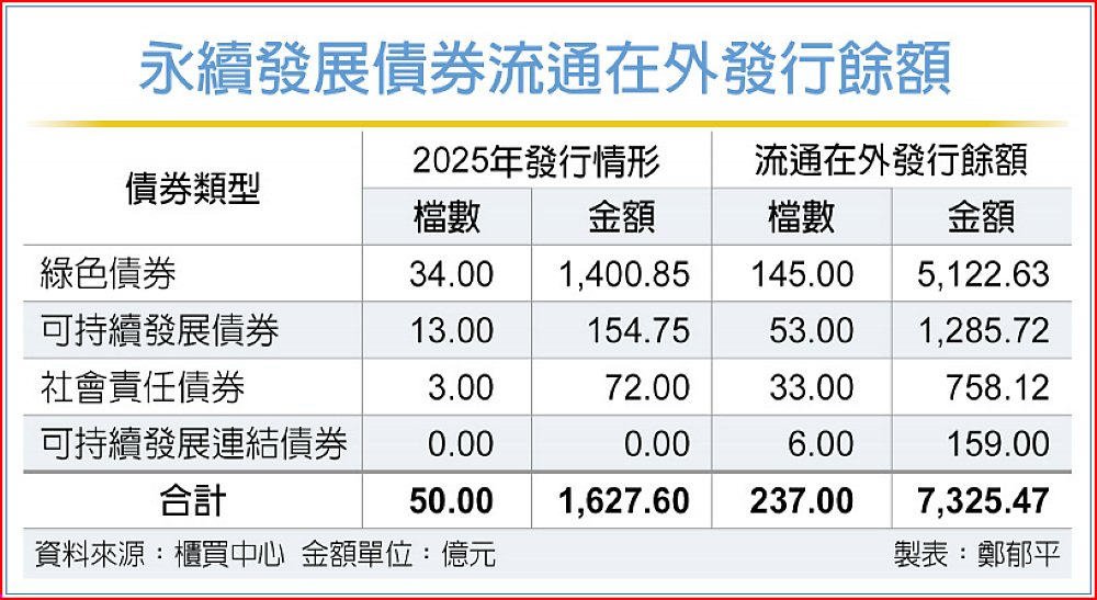櫃買中心今年持續積極推動永續發展債券不遺餘力,統計至19日發行1,627.6億元。櫃買中心指出,短期內預計還有台積電在20日發行235億元綠色債券,將拉高今年永續發展債券發行金額至1,862.6億元,不僅突破去年的1,492億元、再締新猷,年底前更將劍指2,000億元整數大關,寫全新里程碑。