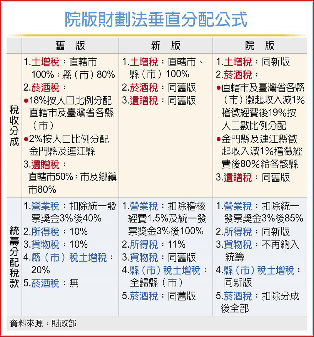 此外,國庫署署長陳柏誠說明,《財劃法》是國家財政《憲法》等級的大法,財政部前後和地方政府共有六次會議,因新版和再修版《財劃法》反製造更多問題,政院須提版本。