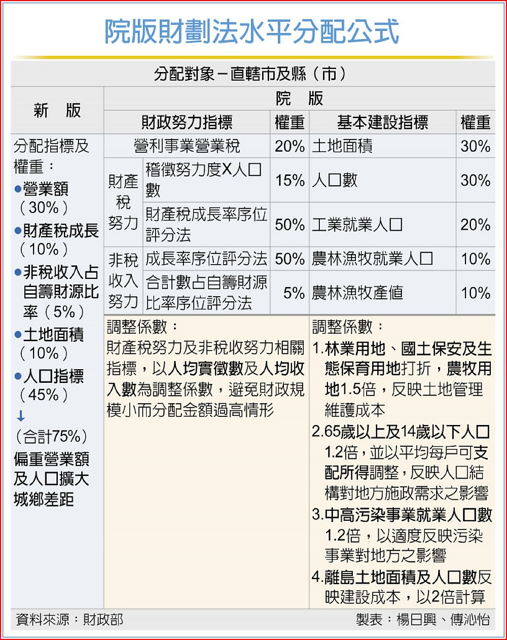 國庫署署長陳柏誠強調,《財劃法》可說是國家財政《憲法》等級的大法,因此財政部對修法一直抱持嚴謹的態度,包括行政院召集會議在內,前後和地方政府歷經了六次會議,才把水平分配指標從80項縮小至目前的10項。