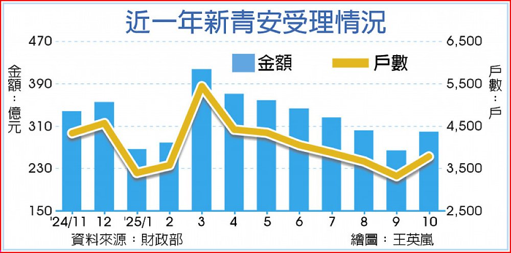 財政部也表示,新青安待核撥案件已逐步去化,截至10月31日,排撥案件及金額分別減少9,434件(約73%)及897.63億元(約71.39%),撥貸時間縮短為最長不超過兩個月。