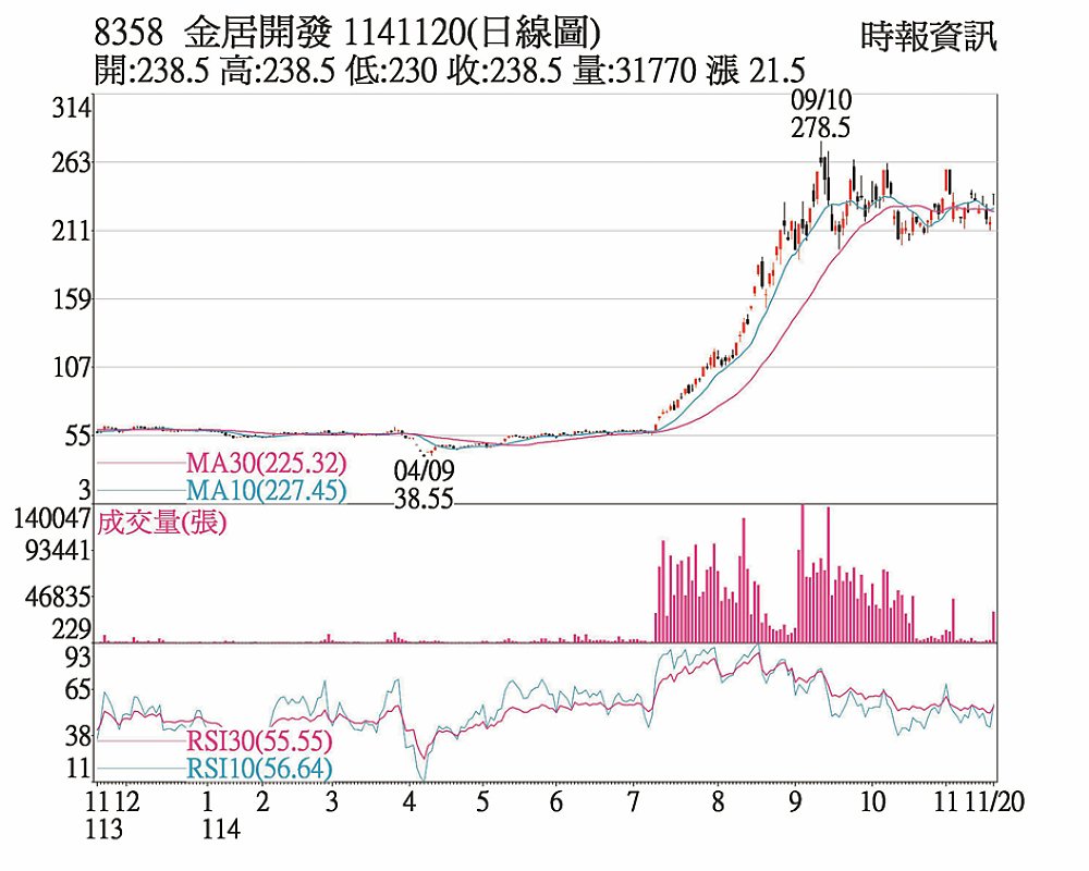銅箔廠金居(8358)20日解禁後,買盤全面湧入,早盤即攻上漲停238.5元,並獲三大法人合計買超3,695張,走勢強勁。法人指出,金居受惠AI伺服器高速傳輸需求強勁,高階HVLP3/4銅箔已成為下一代Rubin、Maia、TPU、Trainium 等平台的核心材料。公司自8月起全面調漲加工費10%~15%,加上高階銅箔出貨強勢,帶動第三季毛利率提升至20.5%,每股稅後純益(EPS)達1.00元。