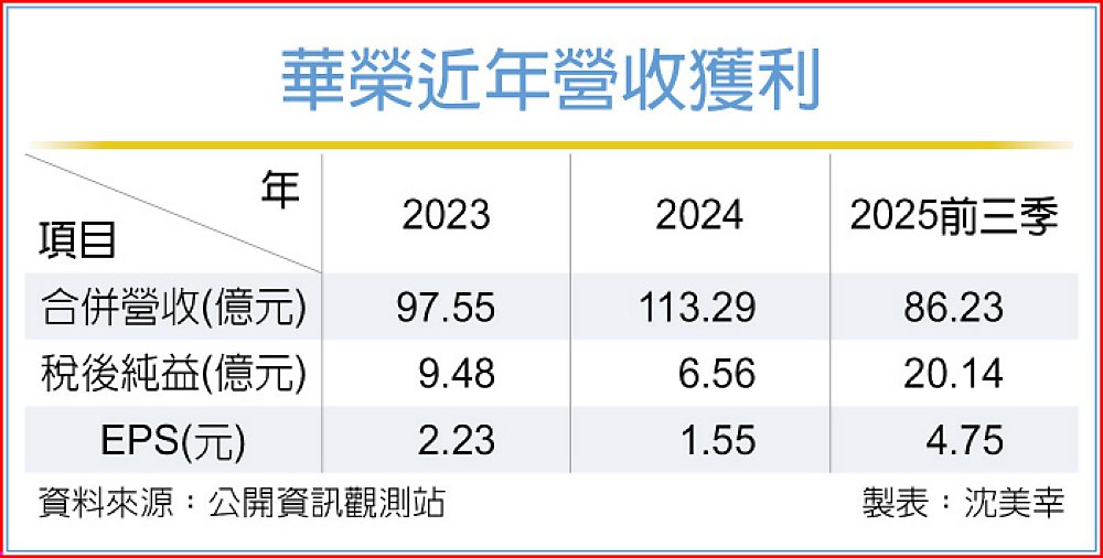 華榮因投資金居(8358)等多檔股票股價大漲助攻,第三季EPS達3.74元、前三季EPS攀升至4.75元,均創同期新高。華榮指出,銅商品受美國實施對等關稅措施、並對銅加徵50%關稅,導致全球經濟成長下調,金融市場風險增加,密切關注局勢變化。國內營建工程、水電五金需求緩延,加上銅線市場競爭加劇,華榮前三季銅線營業額年減38.67%,華榮持續調整銅線庫存量。