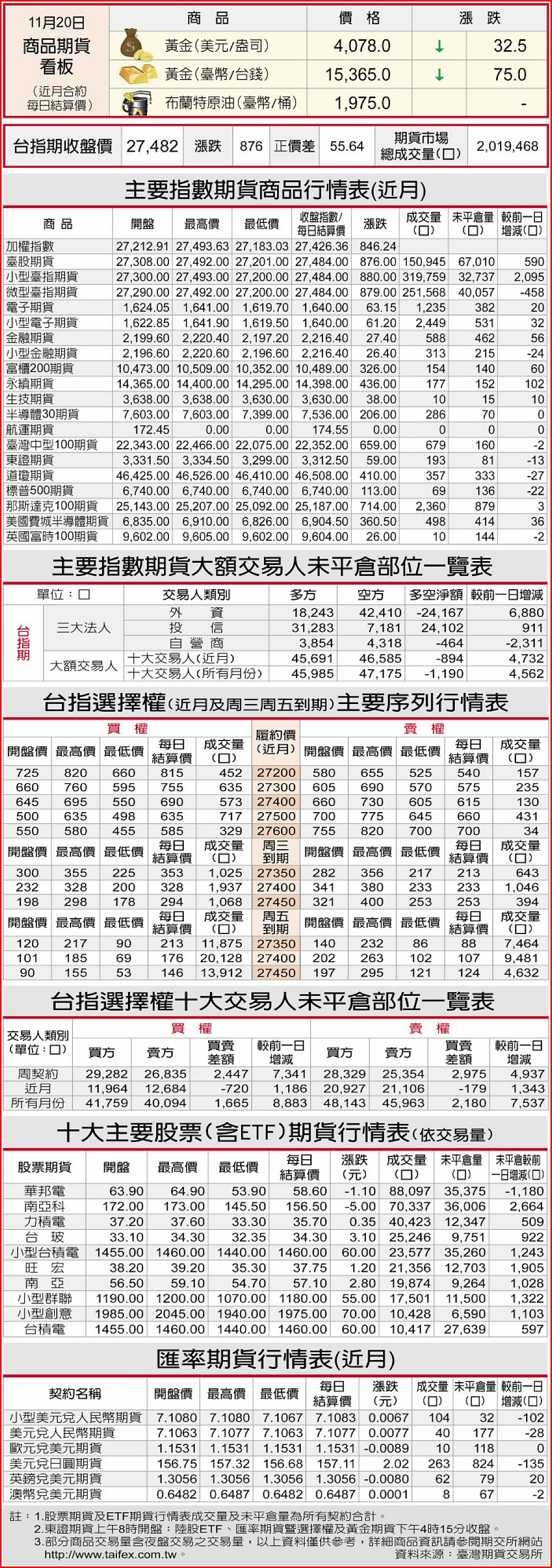 期貨商品行情表