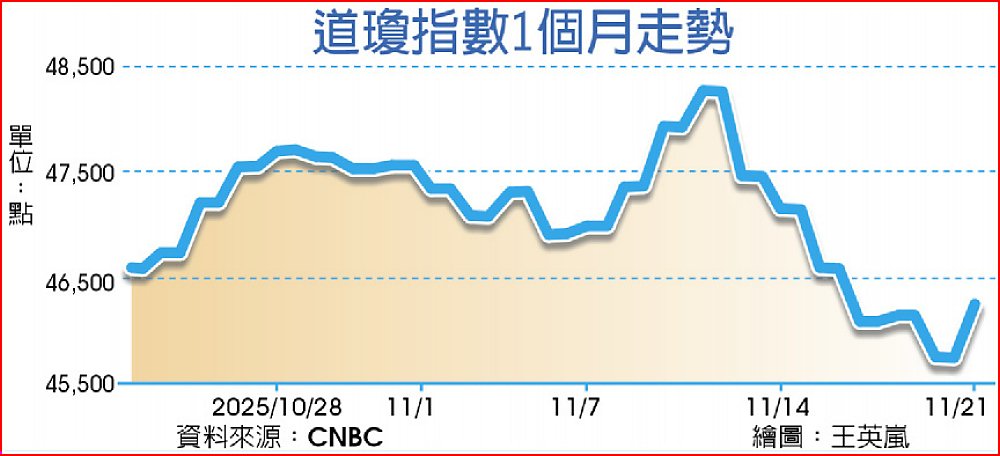 美國聯準會(Fed)三把手威廉斯(John Williams)暗示,12月有機會再次降息,激勵美股21日強勁反彈,一甩前日跌深陰霾,道瓊工業指數大漲將近500點,但科技股表現相對疲弱。美國年終購物旺季即將登場,未來一周市場聚焦零售銷售數據與黑色星期五買氣,並藉以觀察美國經濟狀況。