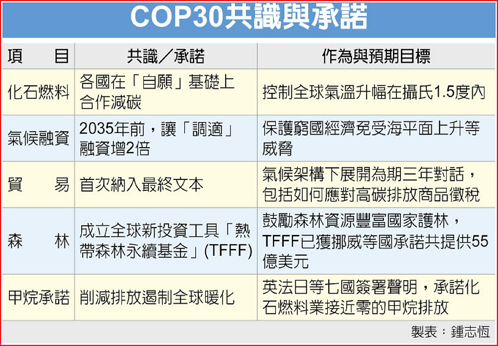 巴西主持的聯合國氣候變化綱要公約第30次會議(COP30)在爭議聲中落幕。雖然大會勉強通過協議,但歐盟等力主逐步淘汰化石燃料的路線圖因產油國反對而未被納入,讓減碳目標大打折扣。