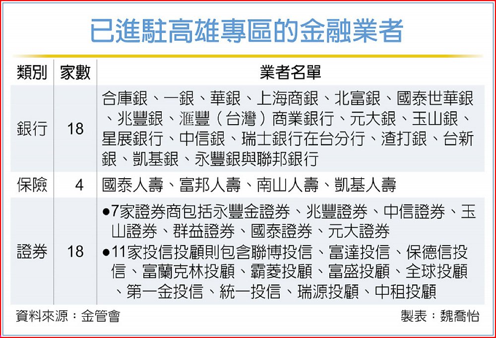 亞洲資產管理中心為國家級重要政策,金管會統計,高雄專區自今年7月啟動試辦,截至11月24日已吸引40家金融機構進駐,涵蓋18家銀行、18家證券投信投顧與4家保險業者。