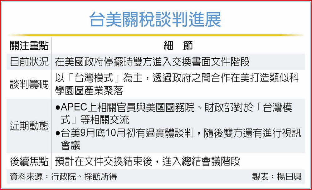 目前台灣出口至美國的商品仍須支付約20%關稅,而台灣正與美方討論降低關稅的可能性,作為整體協議的一部分。來自台灣的半導體產品目前獲得關稅豁免,以促進美國國內生產能力的建立。