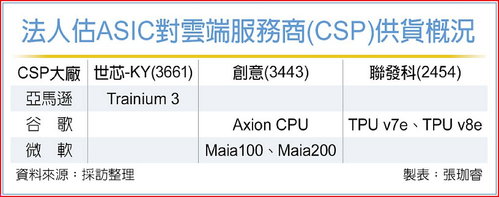 法人指出,輝達長期享有的GPU高溢價空間(毛利率約7成),未來可能將部分轉移至ASIC業者,CSP若選擇與ASIC夥伴合作,能將節省下的預算保留,投入更核心的模型研發。台系ASIC供應鏈,更因背後有台積電等晶圓代工大廠的強大支援,在CSP自研晶片潮流中擁有先天優勢。