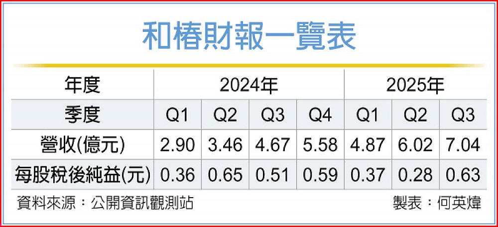 2025年和椿與半導體合作夥伴展開策略合作,因專案型態影響毛利率,今年毛利率從去年28.8%,降至24.4%,該公司有信心,明年度毛利率會回溫。而營業利益率目前為6.8%,預期2026年營收成長且費用控管的情況下,營業利益率有機會再攀升。