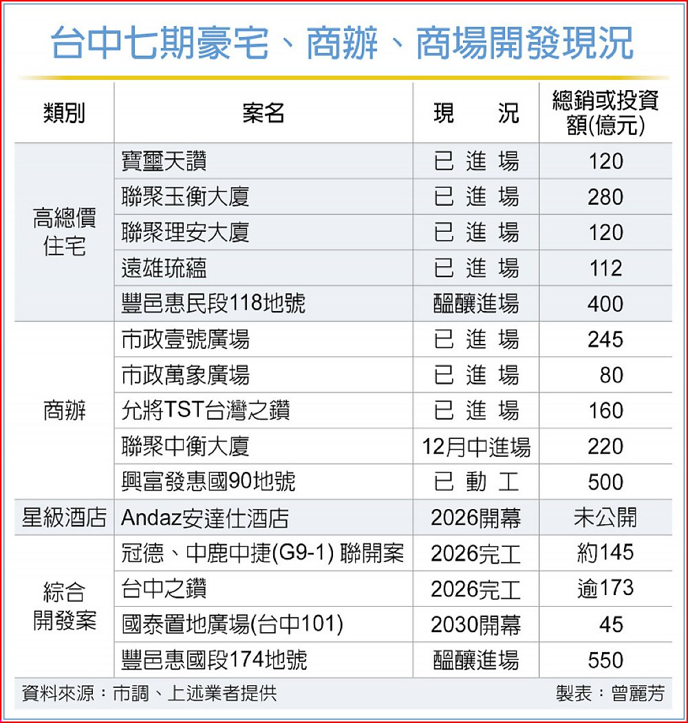 北台灣大型企業正在加快布局七期!如台北101攜手國泰人壽在台灣大道與文心路口打造「台中置地廣場」,預計2030年開幕;中捷G9-1站由冠德建設與中鹿聯手開發,整合商場、飯店與商辦,總投資額突破百億元。