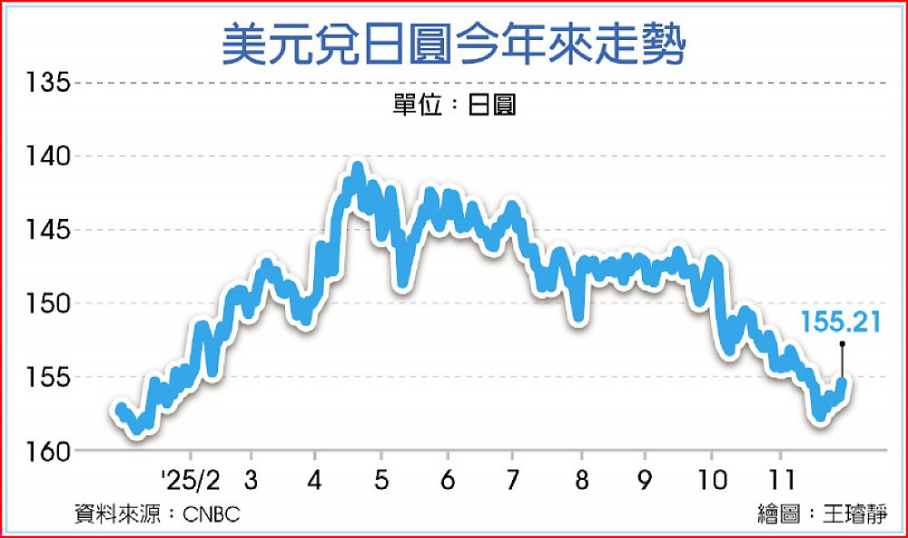 美元因聯準會12月降息預期加溫而承壓,日銀總裁植田放鷹加柴添火,1日盤中日圓勁揚0.6%,來到155.21兌1美元。日圓走強對日股不利,日經225指數連續四個交易日收紅中斷,且摜破5萬點大關,1日收跌1.89%,以49,303.28點作收。