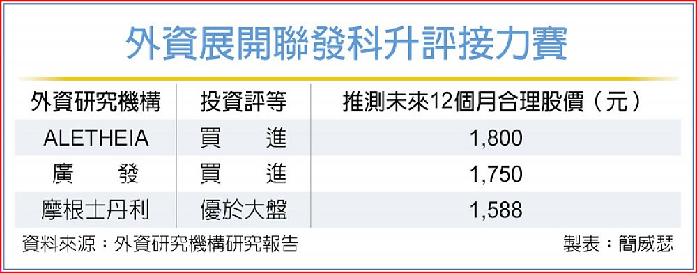 IC設計指標股聯發科挾摩根士丹利證升評優勢,1日頂著台股下跌逆風收紅、漲50元或3.58%。廣發證券、調研機構ALETHEIA最新同步加入升評行列,雙雙升至「買進」投資評等,股價預期上看1,800元高峰,助威聯發科重返強勢領跑千金股地位。
