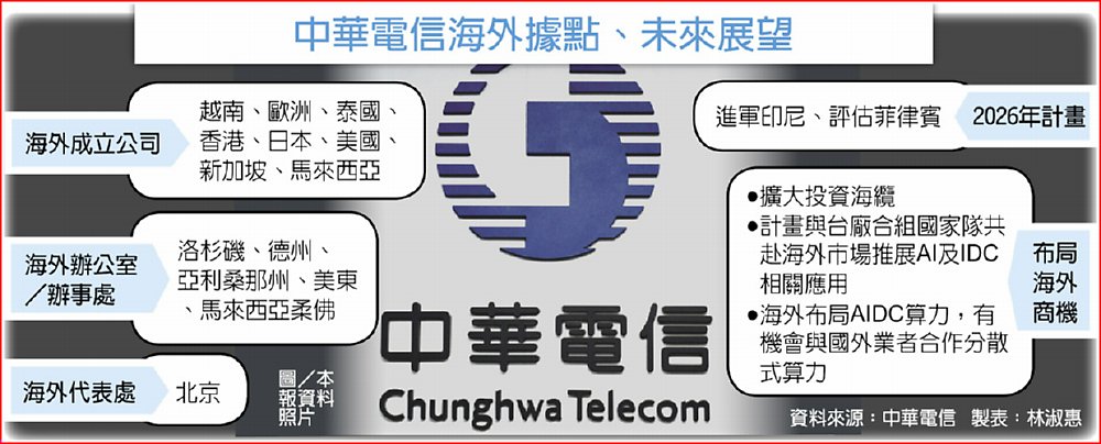 中華電信看好東南亞10億人口商機,董事長簡志誠2日出席該公司舉辦「數位賦能、創馨共生年度分享會」透露,中華電信除已在新加坡、泰國、越南設立子公司,馬來西亞子公司亦於近日成立,明年規畫進軍印尼,菲律賓也在評估中,並計畫與台廠合組國家隊共赴海外市場推展AI及IDC相關應用,尤其AIDC算力有機會與國外業者合作。