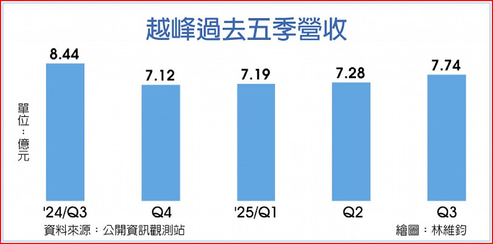 越峰9月、10月營收已經邁入年增,其中9月營收達2.94億元,創下去年8月以來的新高紀錄,月增20.9%、年增8%,10月營收則因工作天數減少而月減。