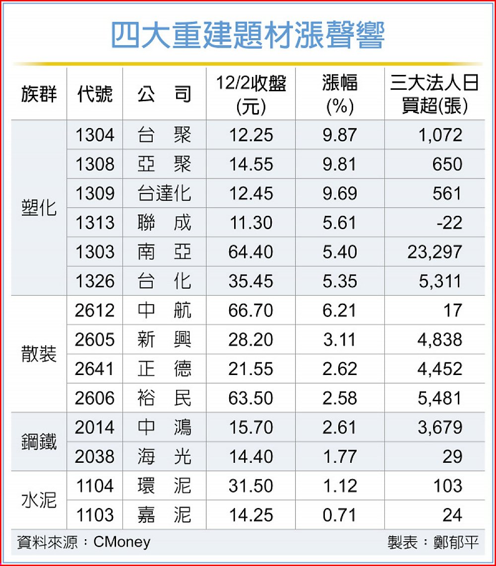 四大重建題材漲聲響