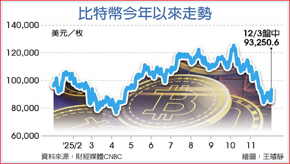 受美國監管正面進展與短期降息預期升溫的提振,比特幣3日重返9.3萬美元關卡,自1日創下的8.4萬美元低點強勁反彈。相較之下,川普次子艾瑞克(Eric Trump)共同創辦的比特幣礦商American Bitcoin因閉鎖期屆滿,在股票禁賣解除首日遭遇嚴重賣壓,股價在半小時內腰斬,終場重挫3成、市值蒸發逾10億美元。