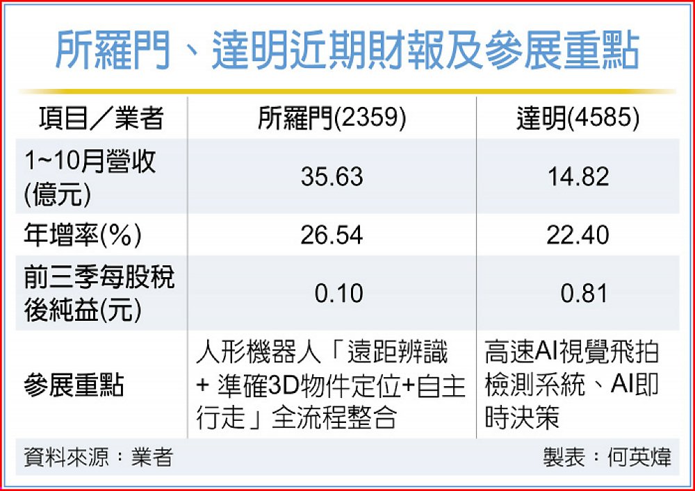 台灣兩大機器人廠商,AI視覺為主的所羅門(2359)及協作機器人業者達明機器人(4585),今年均赴日本參加iREX 2025(國際機器人展),以AI技術為訴求,希望爭取國際級企業的合作。