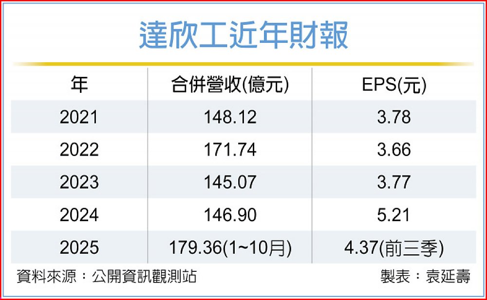 達欣工今年前十月合併營收179.36億元,已創同期新高,年增48.24%。法人估,除有營造工程入帳,達欣工還有新建案開發挹注,預期今年全年營收有創歷年高峰的實力。