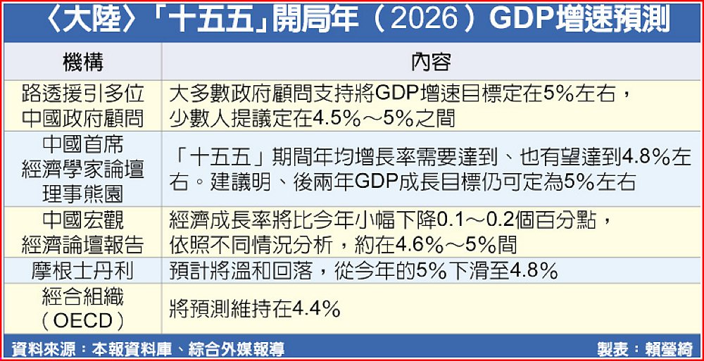 規劃大陸2026全年經濟工作的中共中央經濟工作會議預計12月中上旬召開。2026年為「十五五」開局之年,機構預計政策定調將更加積極,以確保「十五五」順利開局並穩固經濟恢復動能。會議或將針對內需擴張、科技創新、財政貨幣協調發力,及化解房市風險等展開提前部署。