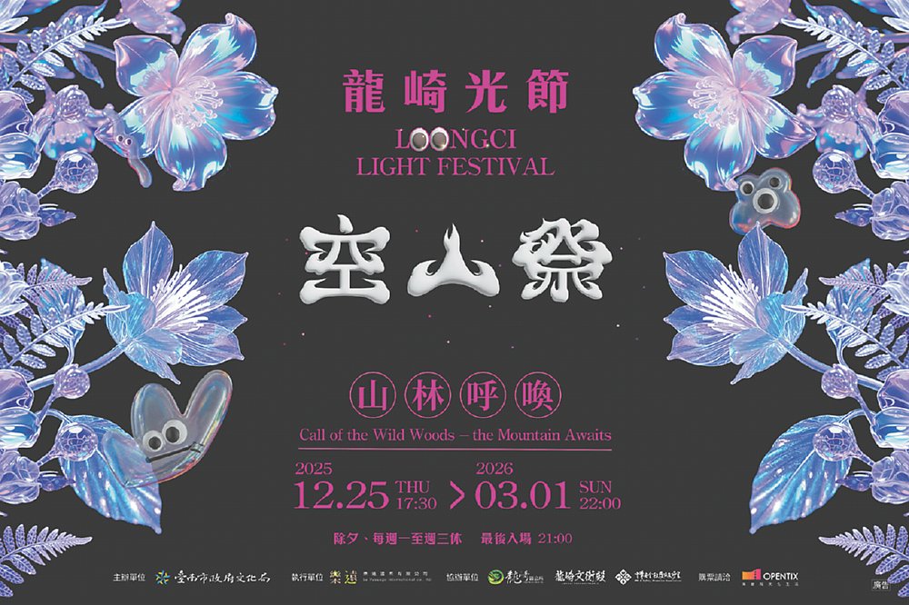 另外,臺南市政府觀光旅遊局玩埤一夏系列活動「2025超偶聯盟 臺南萌市力」,將於12/13(六)在曾文市政願景園區熱鬧登場,現場將集結10位臺南吉祥物明星、5座大型氣偶展示,並規劃街藝表演、趣味闖關、氣墊遊戲與美食市集等豐富內容,增添冬季旅遊的輕鬆趣味。最後不可錯過的還有「2026台南好YOUNG」耶誕跨年系列活動,12月起每周六連續5周為民眾帶來精采好聲音(「佳里童話太空站」(12/6)、「南紡童趣太空站」(12/13)、「搖滾耶誕演唱會」(12/20)、「南瀛草地音樂會」(12/27)及壓軸跨年演唱會(12/31),陪民眾一起用音樂迎接2026。