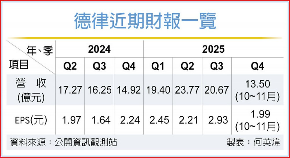 德律預期,第四季與2026年的營收與獲利可望延續成長趨勢,全年表現有望再創佳績。