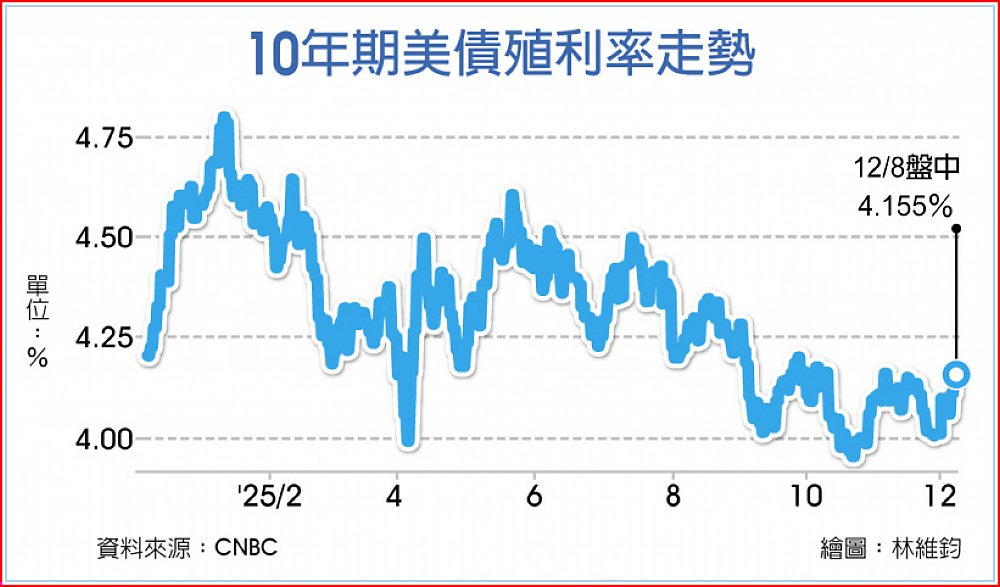 Fed自去年9月啟動降息循環以來,至今累計降息1.5個百分點至3.75%~4%區間,但10年期美債殖利率8日盤中升至4.155%、30年期國債殖利率漲幅逾0.8個百分點,直接挑戰降息通常壓低長期利率的傳統定價邏輯。