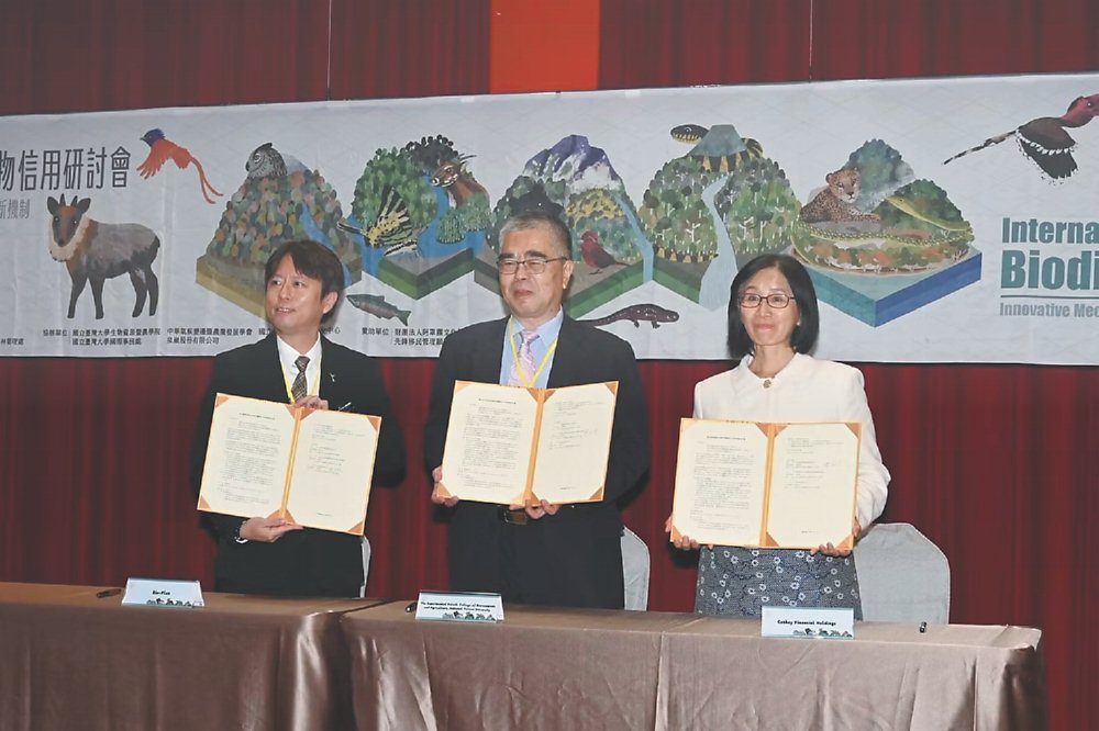 因此,臺大實驗林攜手企業界參與生物信用制度實踐。與國泰金控、泉崴股份有限公司共同簽署為期五年的「淺山復育造林生物信用額度方法學」合作案。與玉山銀行合作推動「高山復育造林生物信用額度方法學」專案,聚焦於海拔1,000公尺以上地區特有物種與生態服務之量化模型建構,作為未來國際認證標準的重要基礎。(臺大實驗林廣告)