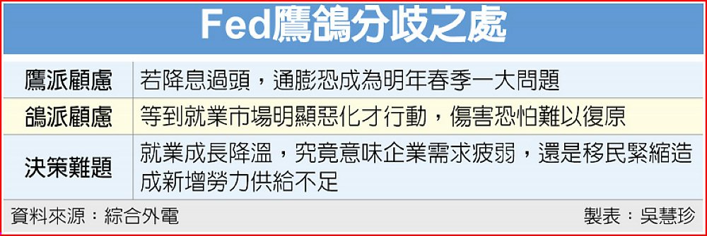 鴿派擔心等到就業市場明顯惡化才行動,傷害恐怕難以復原。舊金山聯準銀行總裁戴莉(Mary Daly)則警告,勞動市場已暴露弱點,景氣風險出現「非線性變化」。