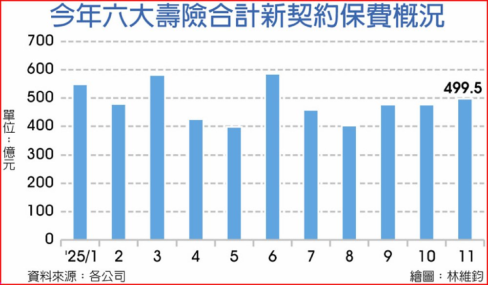 台灣人壽11月新契約保費66億元、年增87.42%;前11月新契約保費635億元、年增41.92%,成長力道強勁。
