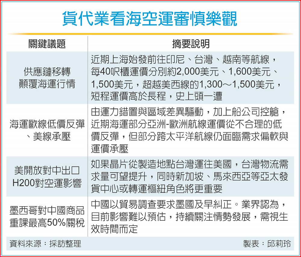 供應鏈大挪移,顛覆全球運價行情,隨著中國製造業為規避美國高關稅風險,擴大將原物料、半成品運往台灣、東南亞等地加工或組裝為成品轉進美國,貨代業者透露,上海始發前往台灣、越南、印尼等航線貨櫃海運運價一路漲,近期更超越跨太平洋的美西線,出現史上頭一遭「短程運價高於長程」,震撼航運圈。