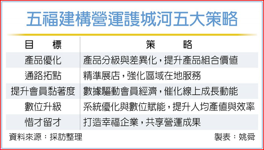 五福持續推動數位升級,透過精準推播提升會員黏著度,同時預計於2026年上線全新會員權益計畫,提供新會員禮包、專屬折扣及會員日活動,為線上訂單注入新的成長動能。