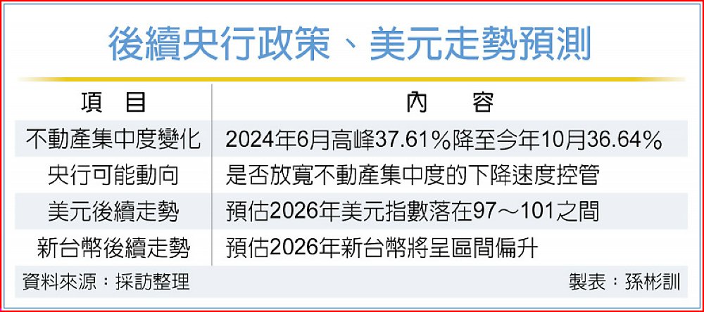 也就是說,這次要觀察重點在於,央行是否放寬不動產集中度的下降速度控管,甚至排除特定計算等方式,都是留意重點。