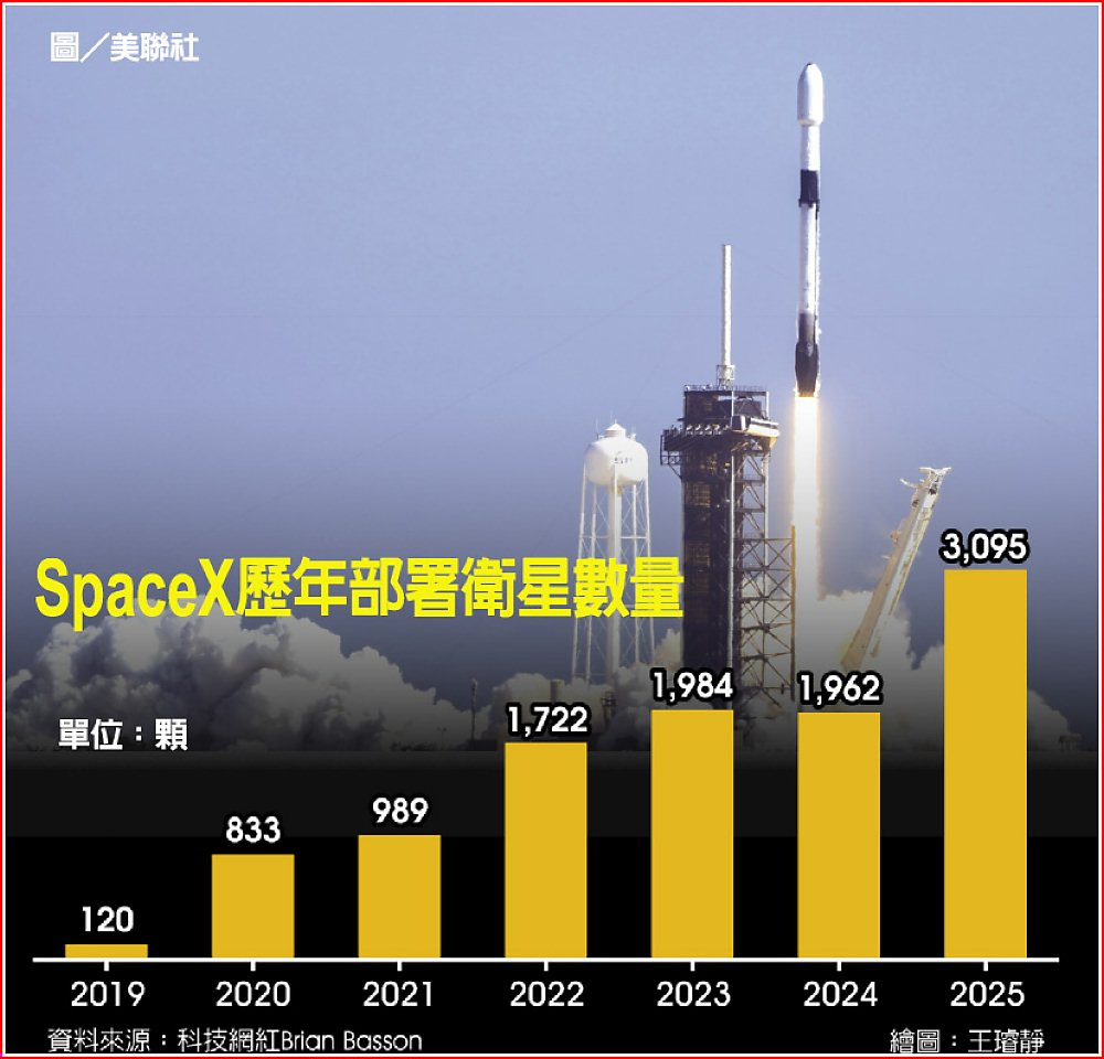 另外據太空科技觀察家巴松(Brian Basson)在社群平台X上公布的圖表,SpaceX今年完成任務數達120次,比去年多了31次,部署衛星也從去年1,962顆激增到3,095顆。馬斯克本人則是轉發開篇貼文,並寫道:「幹的好,SpaceX!」