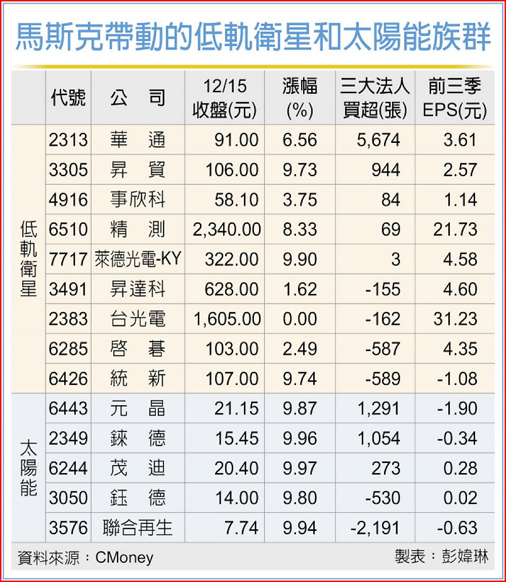 SpaceX、太陽能概念股 狂歡