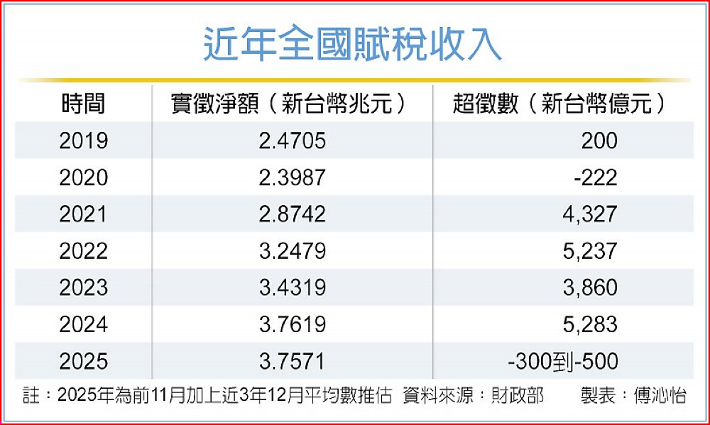 至於今年經濟成長率7.37%,為何稅收無法達成預算。莊翠雲表示,包括所得稅在內,有些稅收必須到明年才會呈現;此外,財政部也統計,今年受對等關稅申請延、分期的稅款約600多億元,也影響總稅收,但後續會逐步入庫。
