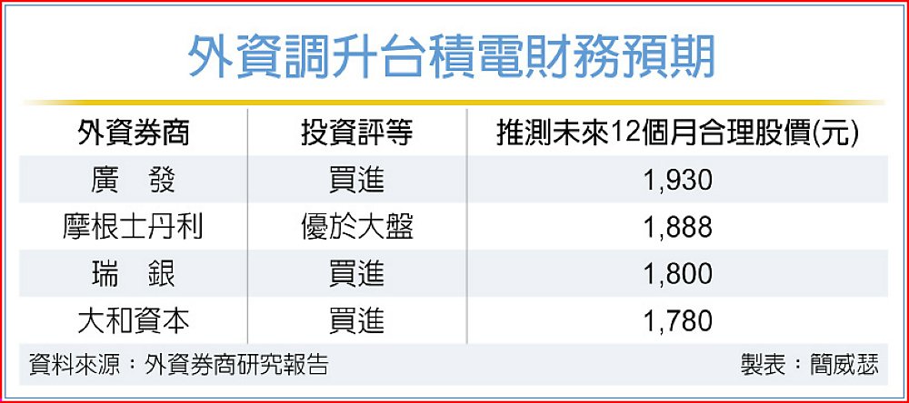 大摩甫提出半導體產業2026年展望,不僅看好產業景氣,研判能見度延伸至2027年,為市場看AI帶動半導體循環注入強心針。摩根士丹利證券大中華區半導體產業研究部門主管詹家鴻在全球晶圓代工領域持續將台積電列為首選(Top Pick)外,旋即調升財務預期,把推測合理股價由1,688元調升至1,888元。三外資調升股價預期來到2字頭大關前,再度確認外資看台積電目標價升級大趨勢。