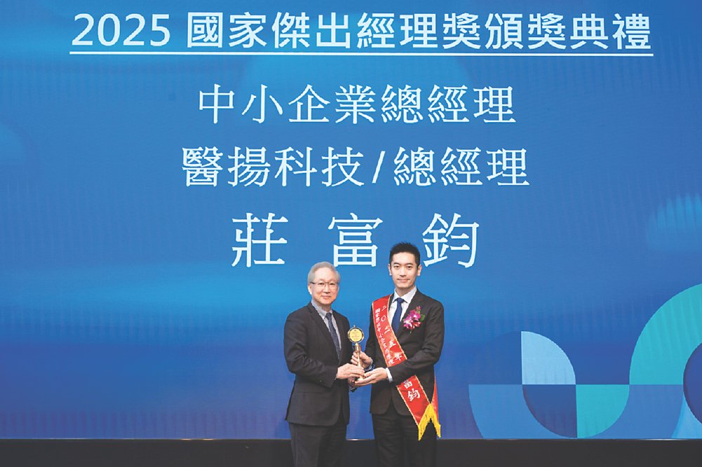醫療電腦大廠醫揚科技(6569)總經理莊富鈞,榮獲中華民國企業經理協進會主辦的第43屆「國家傑出中小企業總經理獎」,為今年醫療科技領域少數獲此國家級肯定的總經理代表。