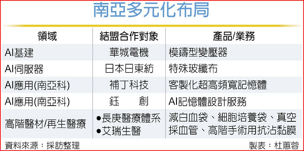 事實上,南亞長期耕耘電子材料、化工(EG、DOP等)、聚酯及塑膠加工,以自身調整策略,完成多元轉型升級;旗下轉投資南亞科透過入股策略結盟模式,切入IC設計,盼掌握產業需求趨勢契機。