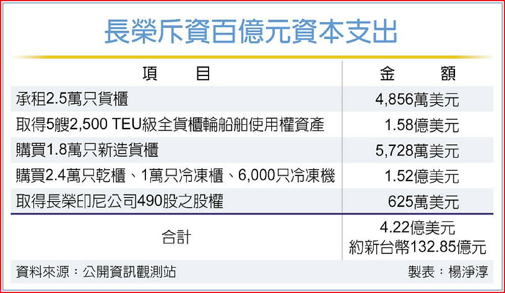 此外,長榮董事會也在同日通過多項重大決策,加計上述櫃租支出,合計總共通過高達4.22億美元、約新台幣132.85億元投資案,包括: